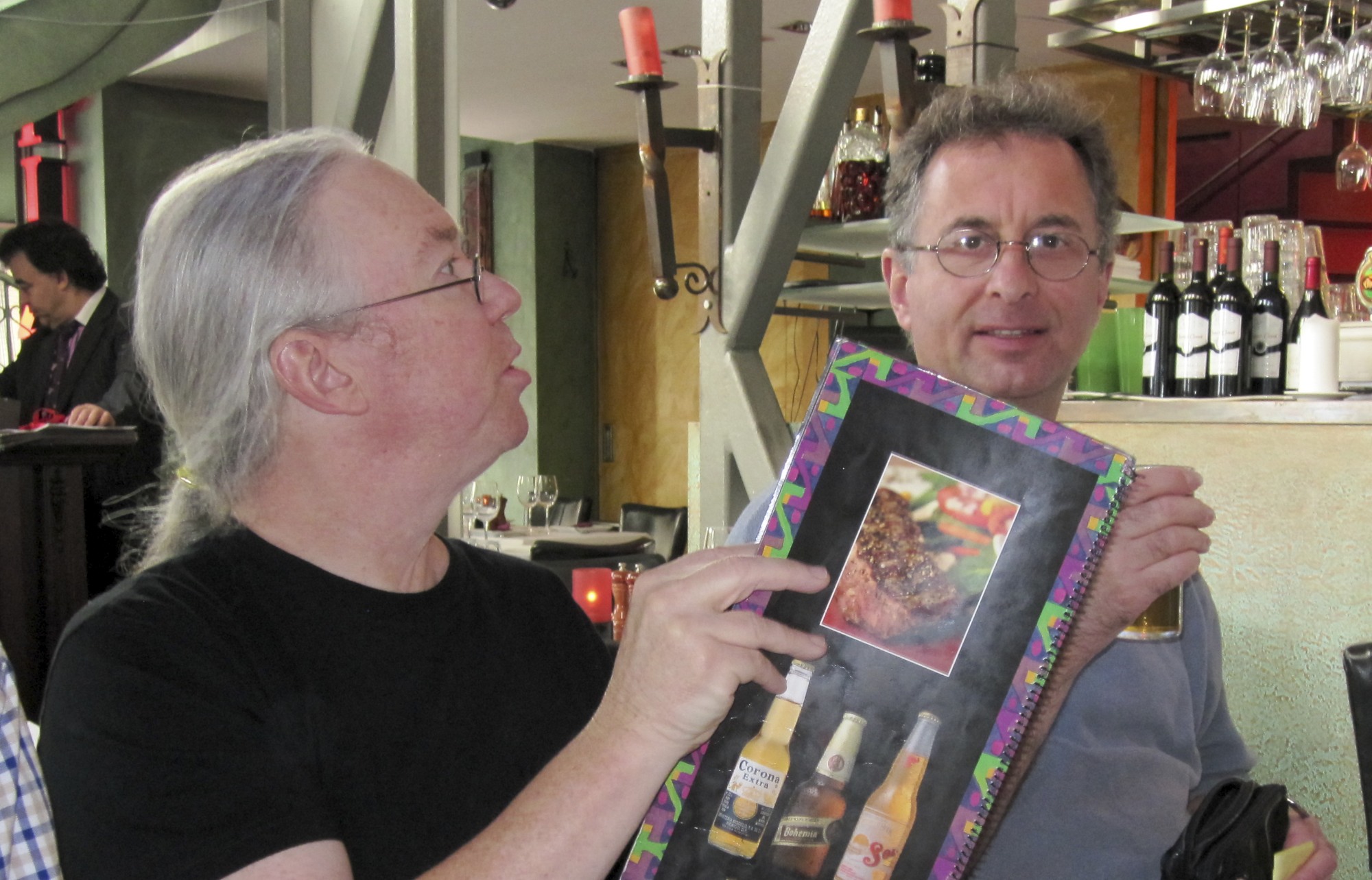 I’m sitting in the bar on our ship listening to Barnaby play the piano. A small crowd is starting to gather — there are several music lovers, and singers on board.